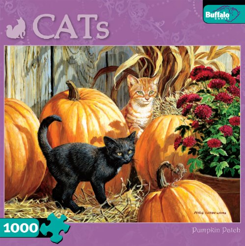 Two curious cats explore a pumpkin patch in this 20 by 27inch jigsaw puzzle. Illustrated by Persis Clayton Weirs, this puzzle contains 1000 pieces. Read more...