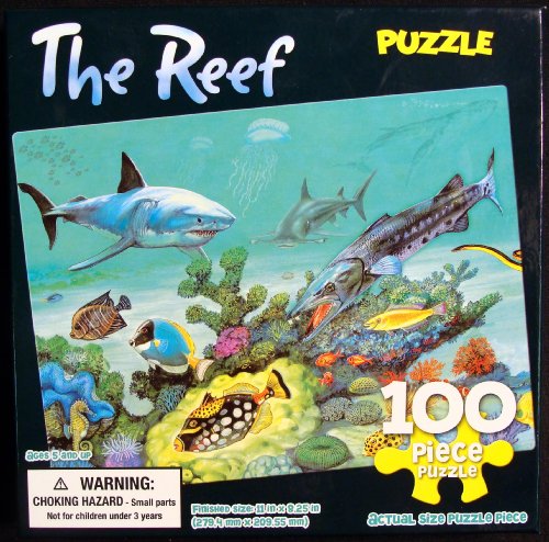 This 100 piece puzzle offers a beautiful depiction of the reef as it teems with fish and coral. The puzzle also recognizes the dangers of the sea as it features a barracuda, great white and hammerhead sharks, and jellyfish. Beautifully rendered and lavishly detailed, the finished puzzle measures 11 inches by 8.25 inches. Read more...