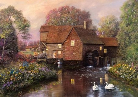 The Old Mill is aptly named for its picture of an old watermill in the countryside. Swans swim in the river in the foreground. The puzzle contains 250 pieces. It is made by the noted, British wooden puzzle manufacturer Wentworth. All pieces are laser cut and the puzzle contains whimsies, pieces that reflect the theme of the puzzle.From the manufacturer: This Wentworth wooden puzzle is a premium quality traditional gift. It is cut in the classic Victorian style, in which every piece is a different shape and selected pieces are cut in shapes that may reflect the image. These 'whimsies' were so called because Victorian puzzle cutters included the shapes 'on a whim', and The Wentworth Wooden Jigsaw Company has revived this old tradition. Manufactured from high quality wood using state-of-the-art, computer driven laser technology, pieces frequently bisected and straight pieces appear in the middle of the puzzle! Read more...