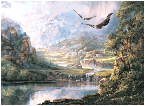 This truly American puzzle depicts eagles rising through the fine mountain mist, searching for fish in the clear waters below. The craggy rocks in the background provide the grand setting that these symbols of freedom call their home. You'll feel an all-American sense of pride as you complete this puzzle. 1000 pieces. Read more...