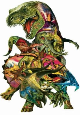 T Rex Attack is a shaped jigsaw puzzle made in the USA by SunsOut. It is in the shape of a Tyrannosaurus Rex, but it contains many other dinosaurs within the T-Rex shape includinga Triceratops. The detailed artowrk was done by Dennis Rogers. The finished puzzle measures 25" x 36". Read more...