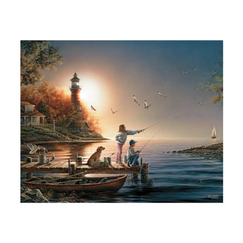 Terry Redlin Collection: Evening Rendezvous. 1000 pieces. A vibrant sunset over a peaceful campsite is highlighted in this puzzle. Size: 24" x 30". WARNING: CHOKING HAZARD-Small parts. Not for children under 3 years. Made in USA. Read more...