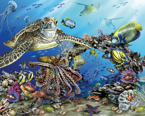 Other jewels besides pearls and sunken treasure lurk beneath the sea; this wonderful puzzle suggests that all sea life dazzles like jewelry. Artist: Lori Schory: Item 531: 1000 piece jigsaw puzzle: Finished size 24" x 30" Read more...