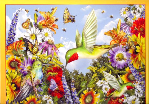 Save the Bees 1000 Piece Puzzle: This Save the Bees 1000 piece jigsaw puzzle features colorful flowers, hummingbirds, butterflies, and of course, bees! The puzzle measures 20 x 27 inches when complete. For ages 13 and up. Read more...