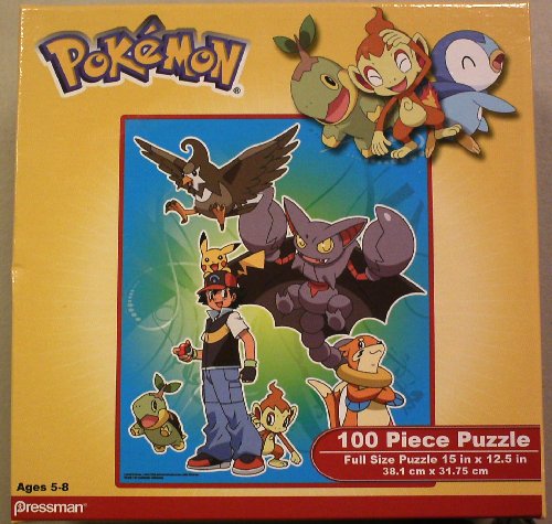 This puzzle scene shows Ash with Starly, Turtwig, Chimchar, and others. Completed puzzle measures 15 inches by 12.5 inches (38.1cm x 31.75cm). 100 interlocking cardboard pieces. Age 5-8 Read more...
